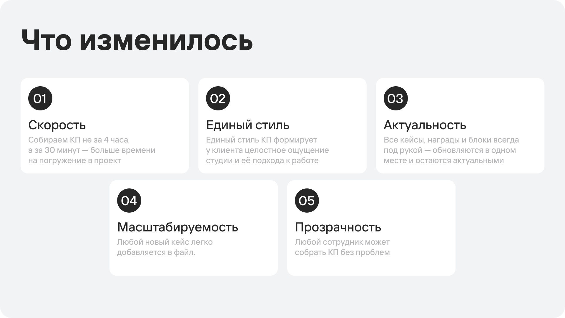 Системность важна не только в интерфейсах, но и внутри студии. Мы увидели проблему — долгое и трудоёмкое создание КП — и автоматизировали процесс.