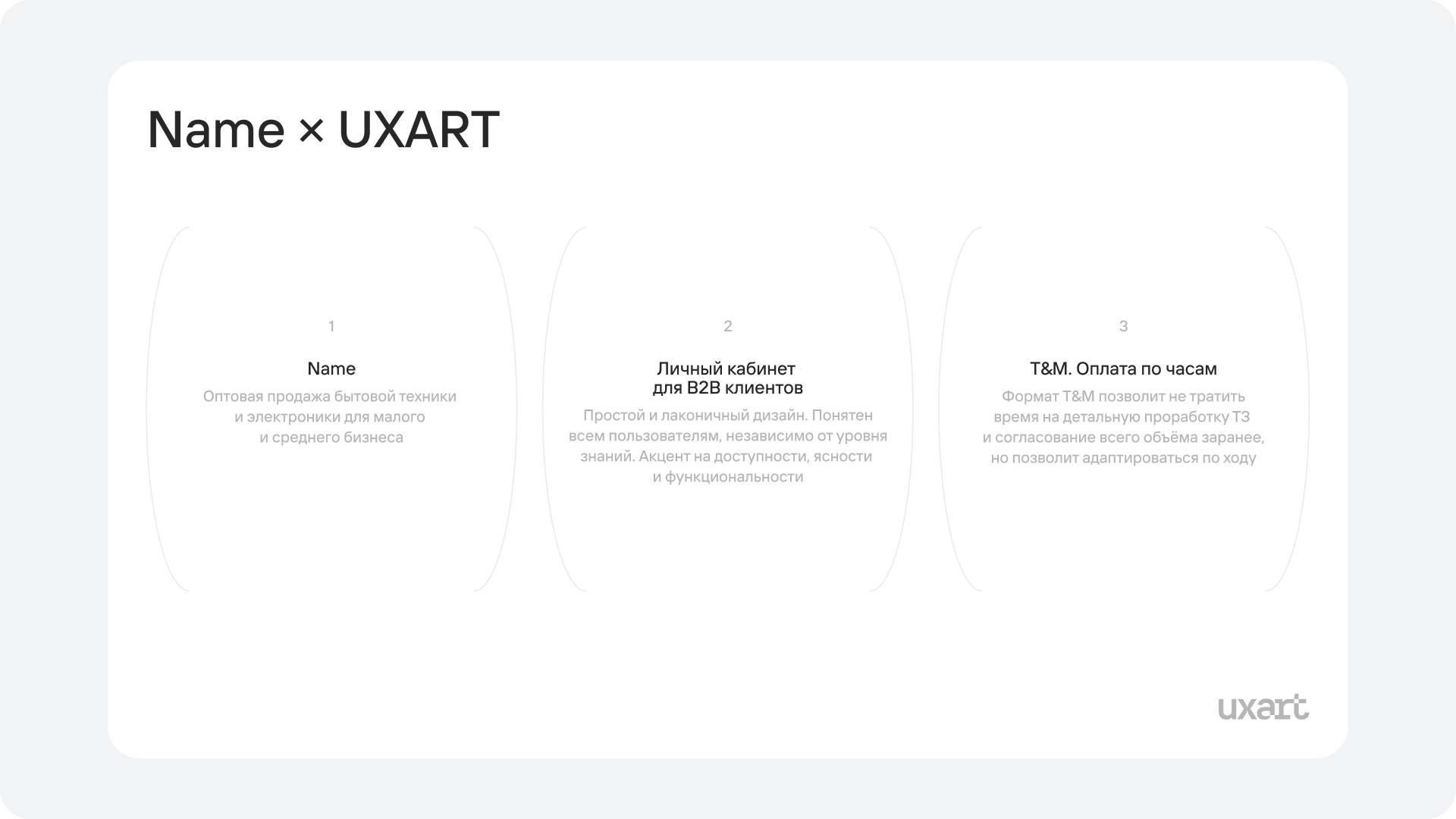 — Подход — показывает, как мы решаем задачи и какие процессы используем; у клиента появляется уверенность, что проект будет структурированным и продуманным.