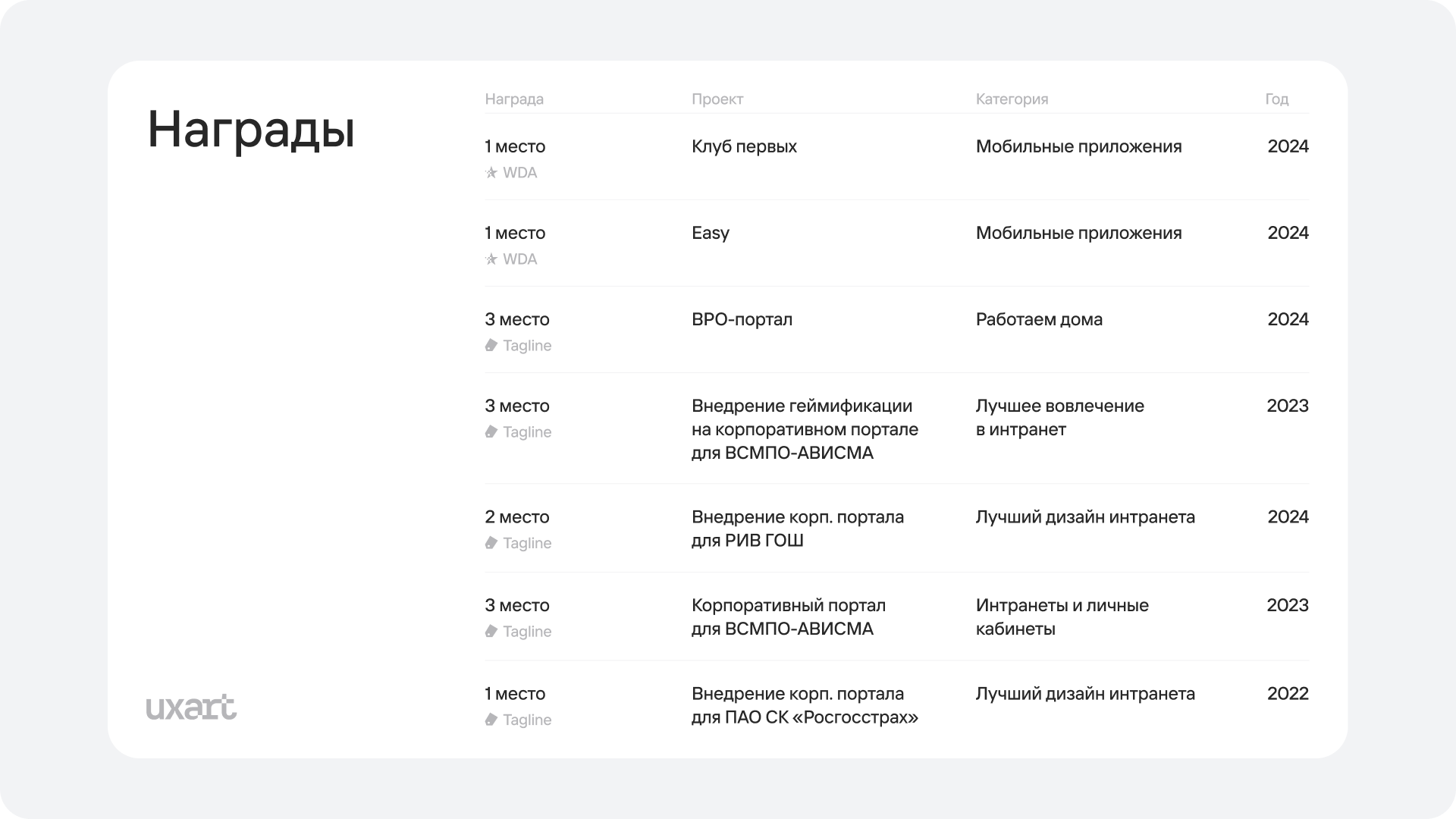 — Награды — подтверждают уровень студии, добавляют авторитета и доверия