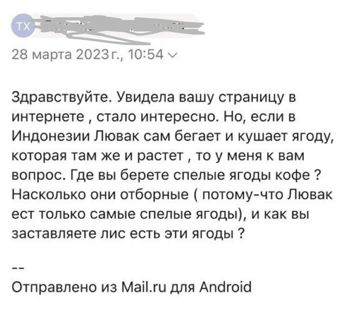 Если в Азии кофе проходит через циветт, то мы решили: а почему бы не использовать сибирских лис? Тем более, что в Новосибирске их не так давно одомашнили. Остальное — дело техники. Так родился бренд «Siberian Levak» — кофе, прошедший через лису. В прямом смысле этого слова.