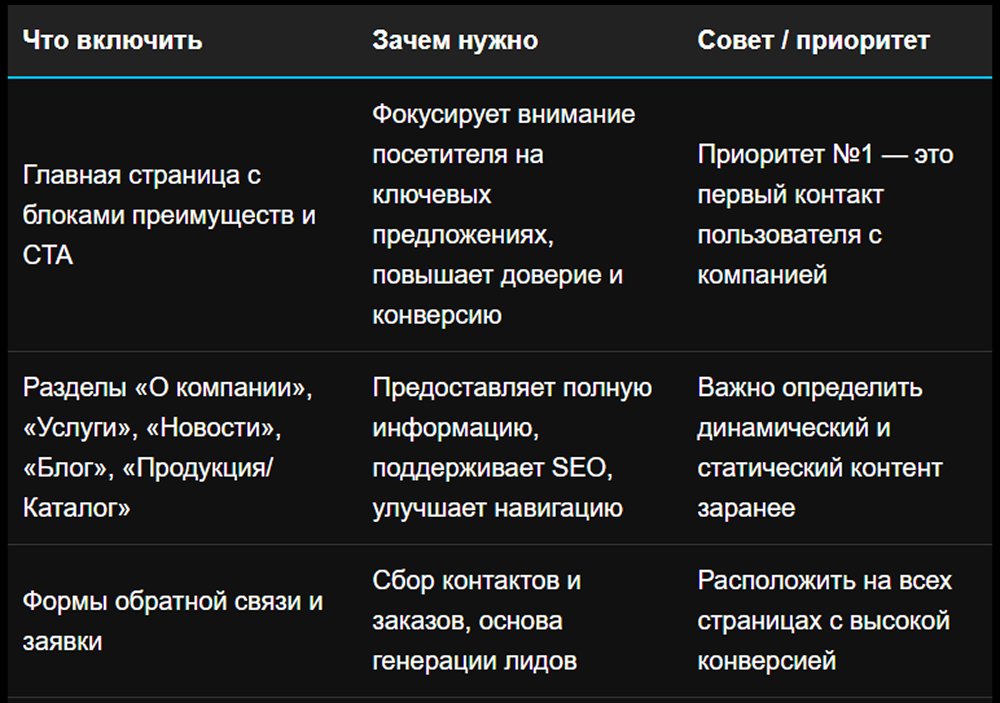 Если вы планируете запускать новый сайт или интернет-магазин, полезно сначала определить «фундамент» вашего проекта — базовый набор страниц, функционал для продаж и взаимодействия с клиентами, интеграции и SEO-настройки.