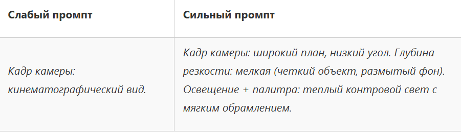 Хороший промпт — это как готовая раскадровка в словах. Опишите, как должна работать камера, укажите глубину резкости, пошагово разложите все действия на экране, задайте освещение и цветовую палитру.