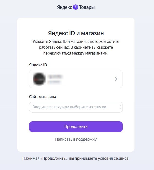 Если вы ранее добавляли сайт в Вебмастер, при нажатии «Продолжить» вы автоматически соглашаетесь на перенос всех ваших товарных фидов (списков товаров) из Вебмастера в Яндекс.Товары.