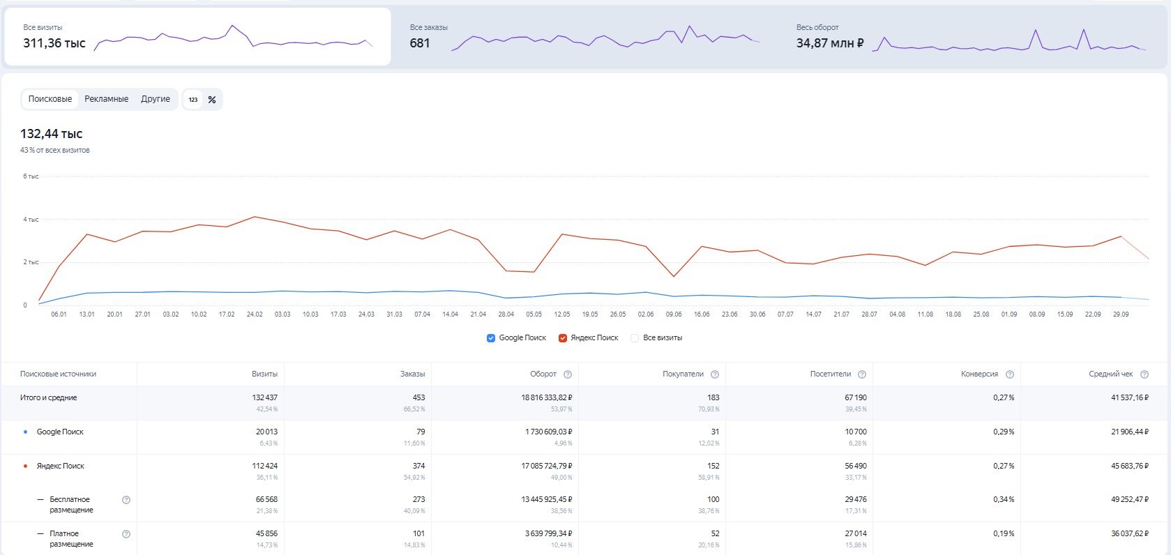 После добавления счетчика, вы получите расширенную аналитику. Но для получения самых полных и ценных данных о продажах (что купили, сколько заработали), необходимо активировать функцию «Электронная коммерция» в настройках самой Метрики.