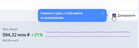 Если вы ещё не успели установить счетчик Метрики на сайт или данных ещё нет, можете временно включить «Деморежим» в Яндекс.Товарах. Это даст вам возможность заранее посмотреть, как выглядит весь функционал и какие отчеты будут доступны.