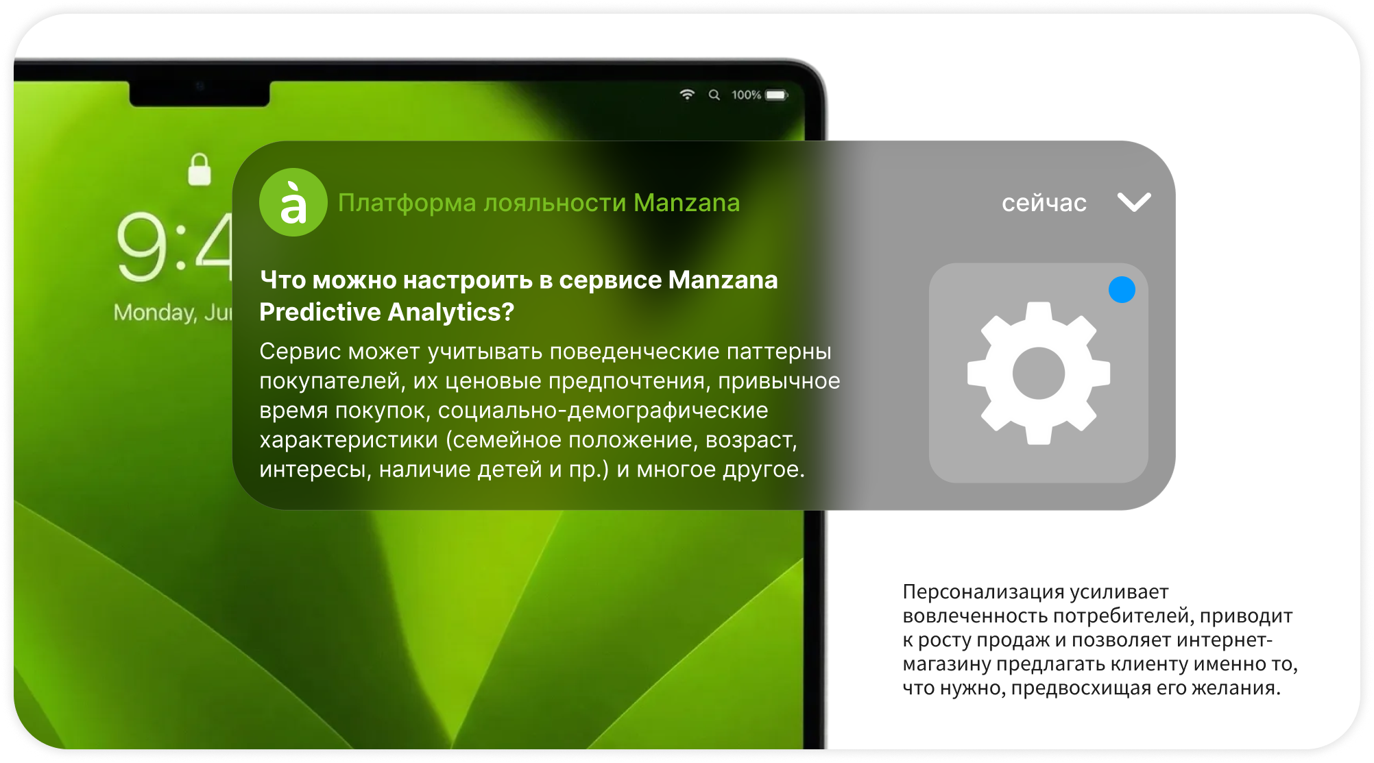 Обеспечить персонализацию покупательского опыта нашим партнерам помогают Manzana Predictive Analytics и Manzana Campaign.