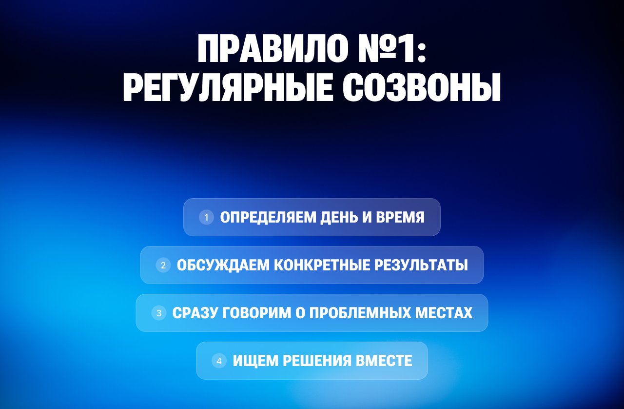 Забудьте подход «созвонимся по необходимости». Мы проводим встречи минимум раз в неделю, а в рамках спринтов — ежедневно. Это не просто формальность, а важный инструмент контроля.