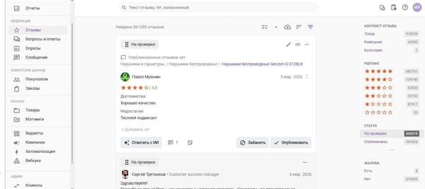 Когда бренд продаёт продукцию через множество каналов, его сотрудникам сложно вручную проверять все отзывы. Гораздо эффективнее работает автоматизация: модерация с помощью AI, автотегирование и автопубликация безопасного контента.