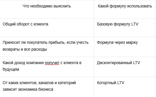 Чтобы применять формулы LTV с максимальной пользой, нужно понимать их связь с управленческими задачами. Методы работают лучше или хуже в зависимости от ваших целей.