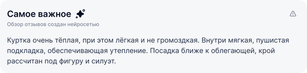 Проследите за тем, чтобы потенциальные покупатели получали ответы на свои вопросы максимально быстро. С этим поможет AI-суммаризация, которая обобщает ключевую информацию из отзывов.