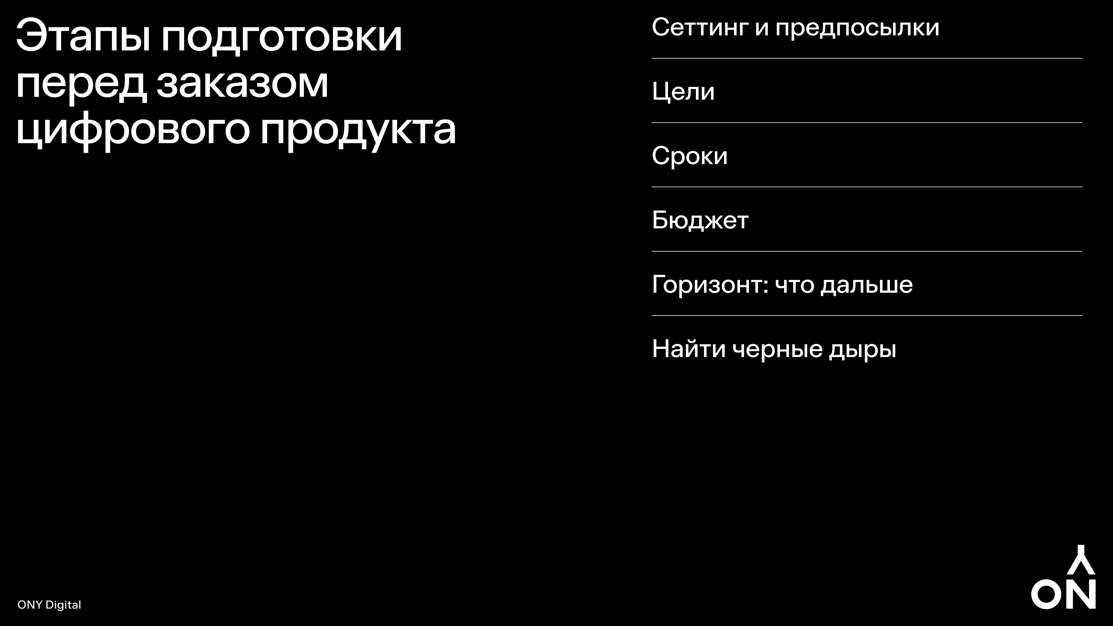 "Недавно нам пришло объёмное ТЗ на разработку приложения. Мы провели брейншторм с заказчиком, чтобы понять цели и задачи проекта. В итоге ТЗ сократилось вдвое, стек технологий поменялся, и мы предложили клиенту более оптимальное решение. Ольга Моисеева, Head of digital production в ONY"
