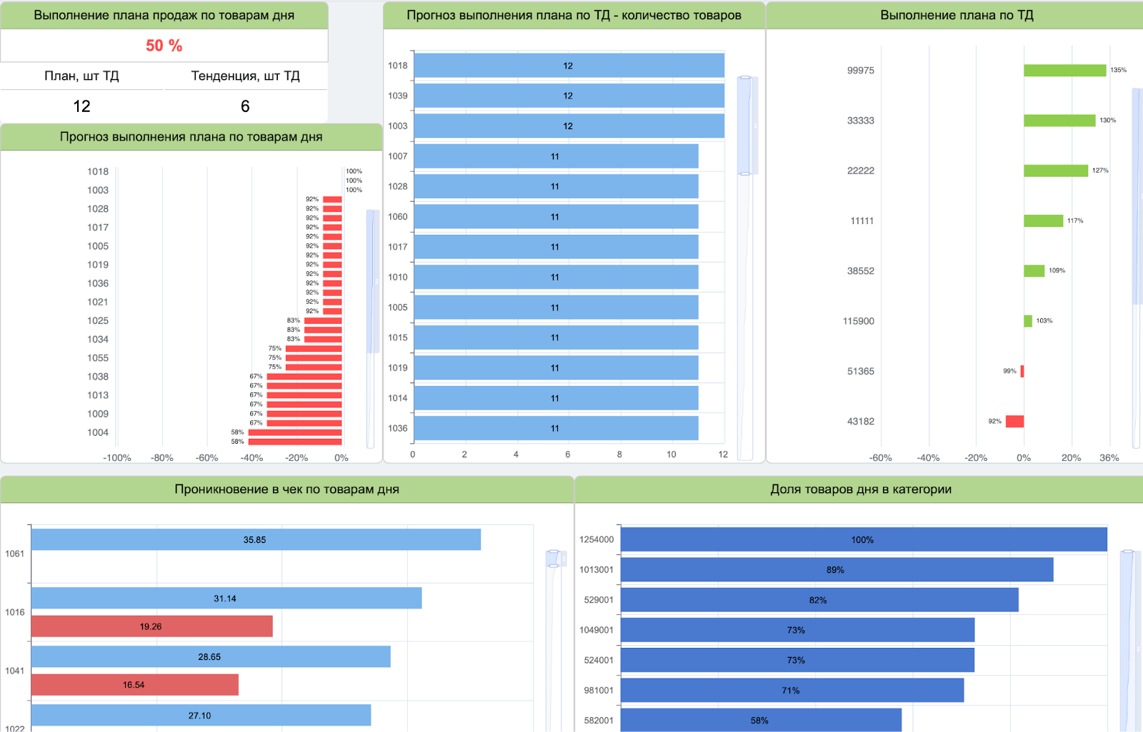 Примеры дашбордов для аптечной сети «Выполнение плана продаж по товарам дня»