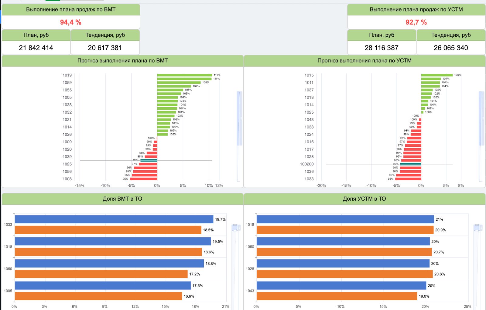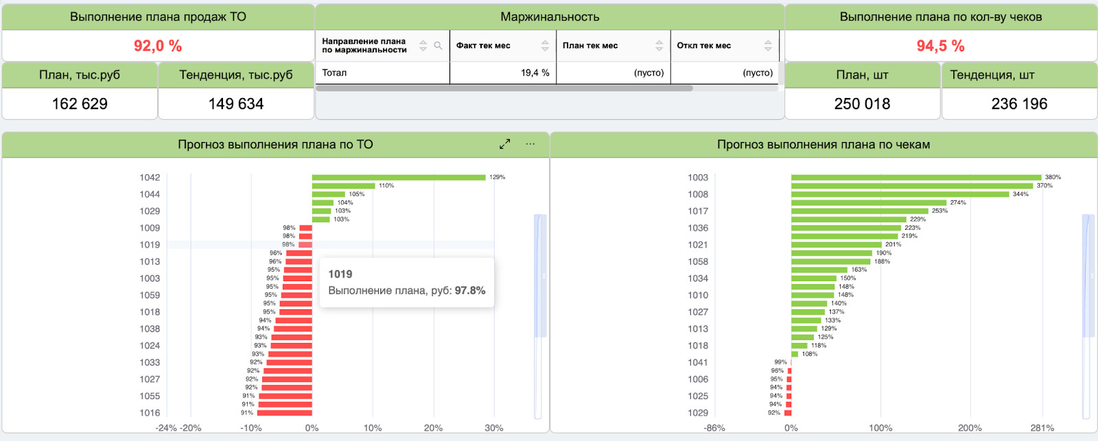 Примеры дашбордов для аптечной сети «Выполнение плана продаж по BMT»