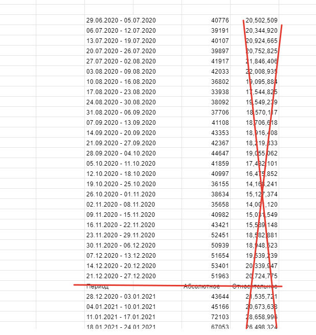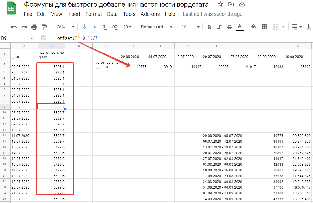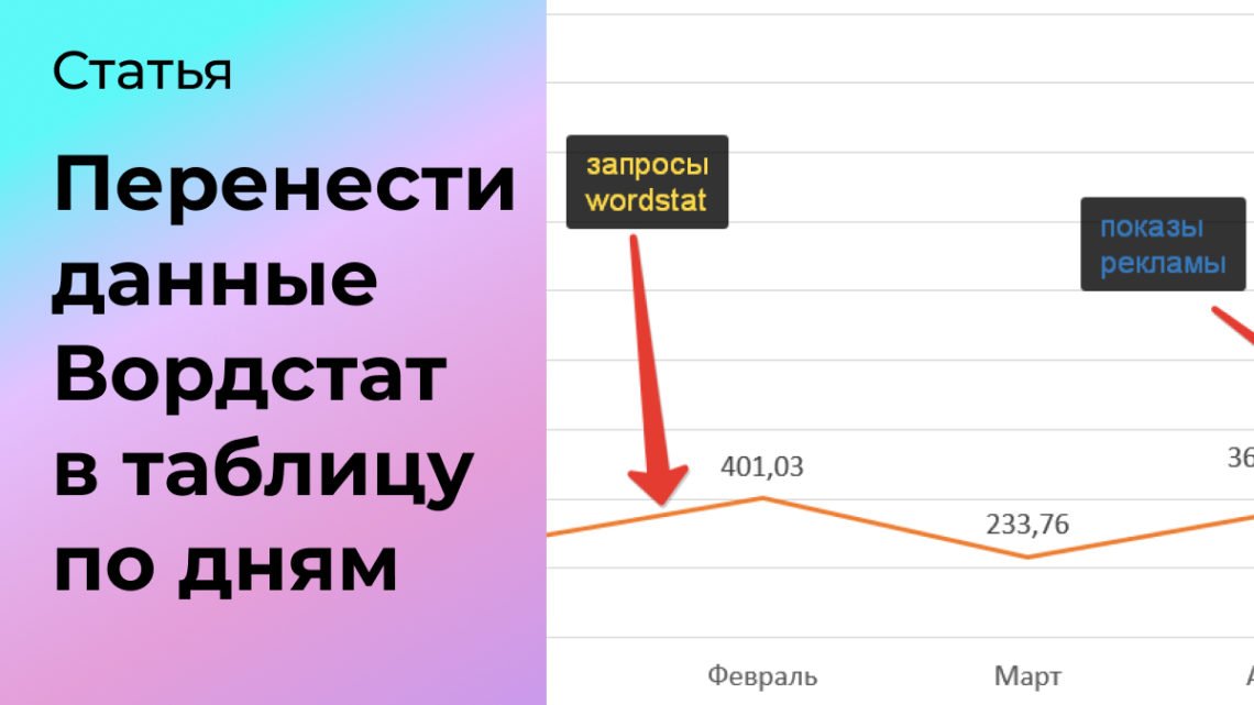 В статье расскажу, какие формулы я использую, когда нужно быстро перенести данные из Вордстат в таблицу, чтобы сравнить динамику по запросам Вордстат с показами рекламы.