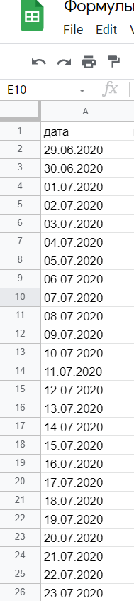 В дополнительном столбце ставим актуальную дату, например, у меня – 29.06.2020. Протягиваем дату до последней даты из отчёта. В примере – 27.06.2021.