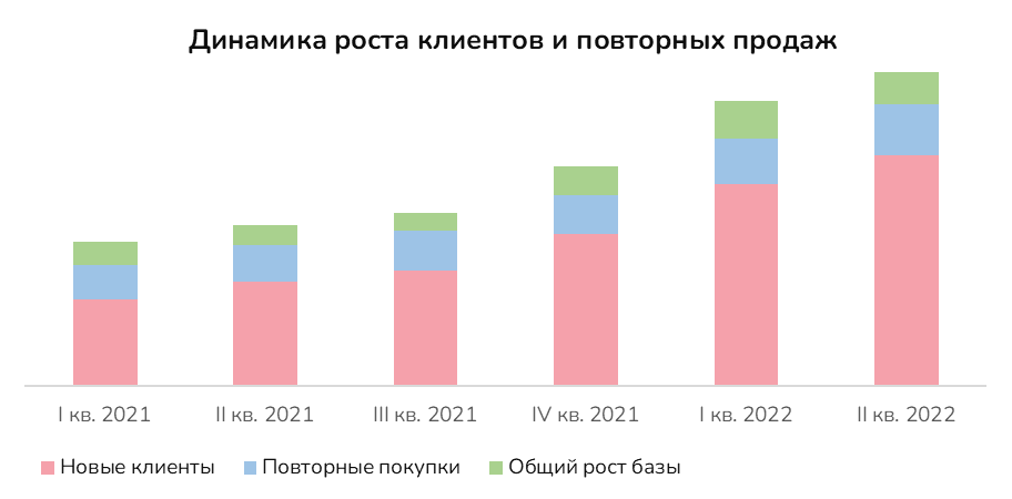Средний чек вырос в 1,74 раза, а повторные покупки совершают 80% клиентов. В 2022 году, который связан с уходом иностранных брендов, компания не только сохранила уровень продаж, благодаря лояльной аудитории, но и нарастила выручку.