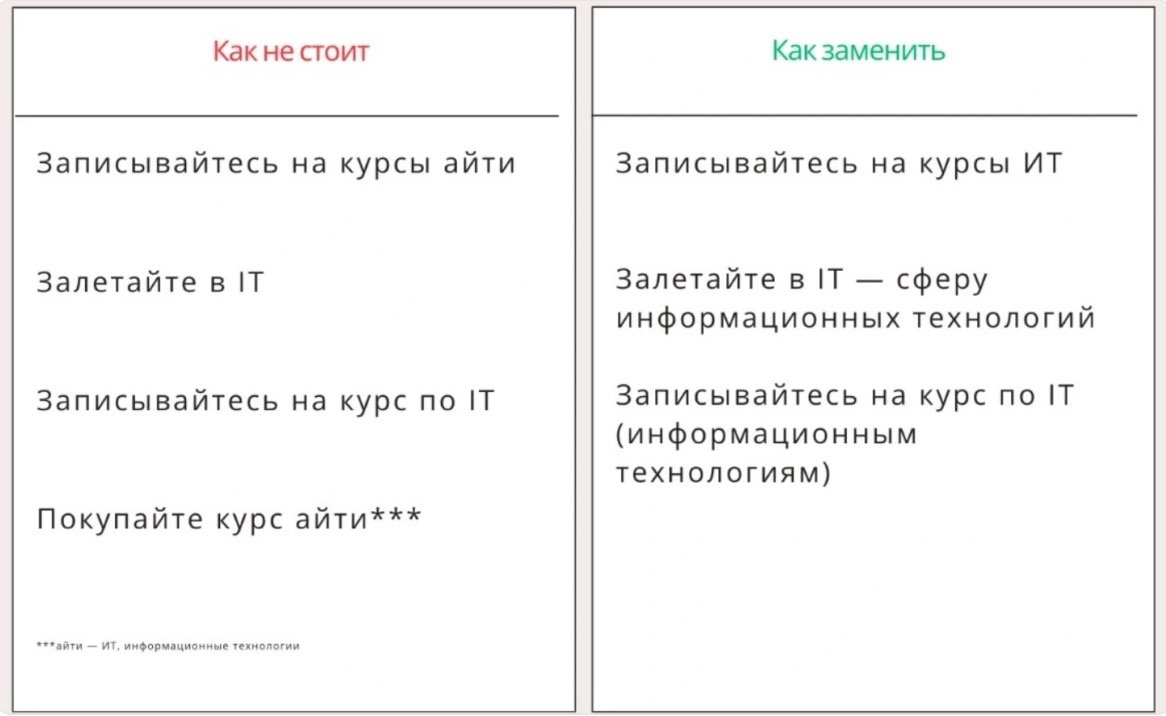 На самом деле ситуация чуть проще: достаточно погрузиться в словари и изучить слова, которые связаны с ИТ-тематикой. Когда автор долго работает с одной нишей, достаточно быстро запоминает слова из словаря, а сверяться приходится меньше. Как вариант — использовать онлайн-сервис NormaSlov или аналоги.