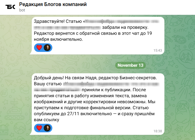 Также неплохо было бы проанализировать статистику: отследить количество просмотров, охваты, в Яндекс Метрике — переходы с сайта издания. Учитываются и прямые контакты: к нам много раз приходили люди в мессенджерах и говорили: я прочитал у вас такую-то статью в СМИ, мне понравилось, хочу с вами работать!