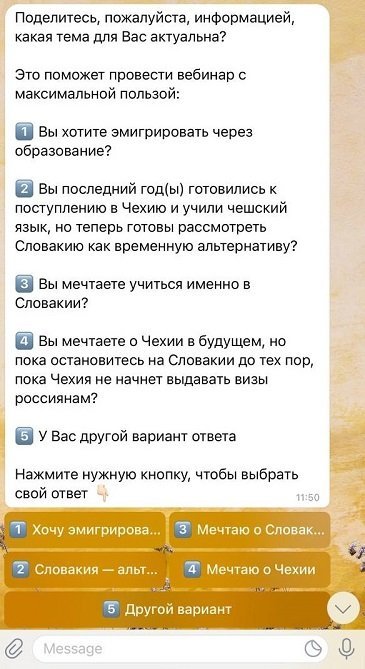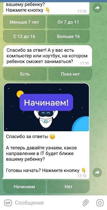Эта информация помогает нам сделать путь подписчика от предложения на посадочной странице в чат-бот логичным и последовательным.