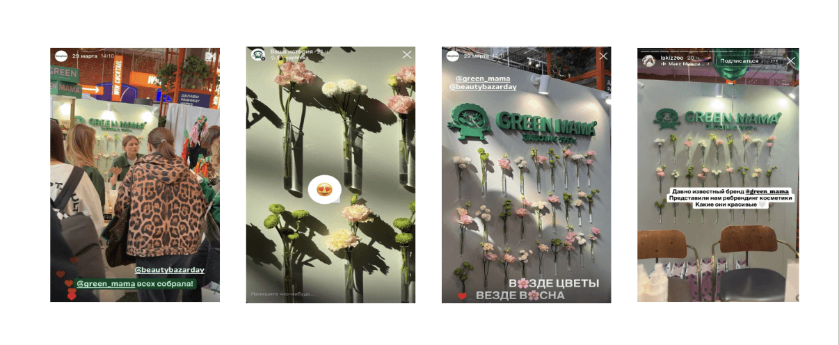 Пример: Для Green Mama мы подобрали и пригласили лидеров мнений, которые делали обзор на стенд в своих социальных сетях. Так как фестиваль длился два дня, это также давало возможность привлечь новых посетителей из онлайна.
