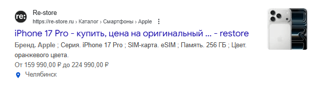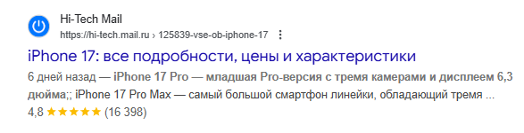 Микроразметка Schema.org позволяет дополнительно структурировать информацию о сайте. Она помогает поисковикам отображать расширенные сниппеты: рейтинги, цены, отзывы, FAQ и другую важную информацию. Такой расширенный сниппет выделяется в выдаче и привлекает больше внимания.