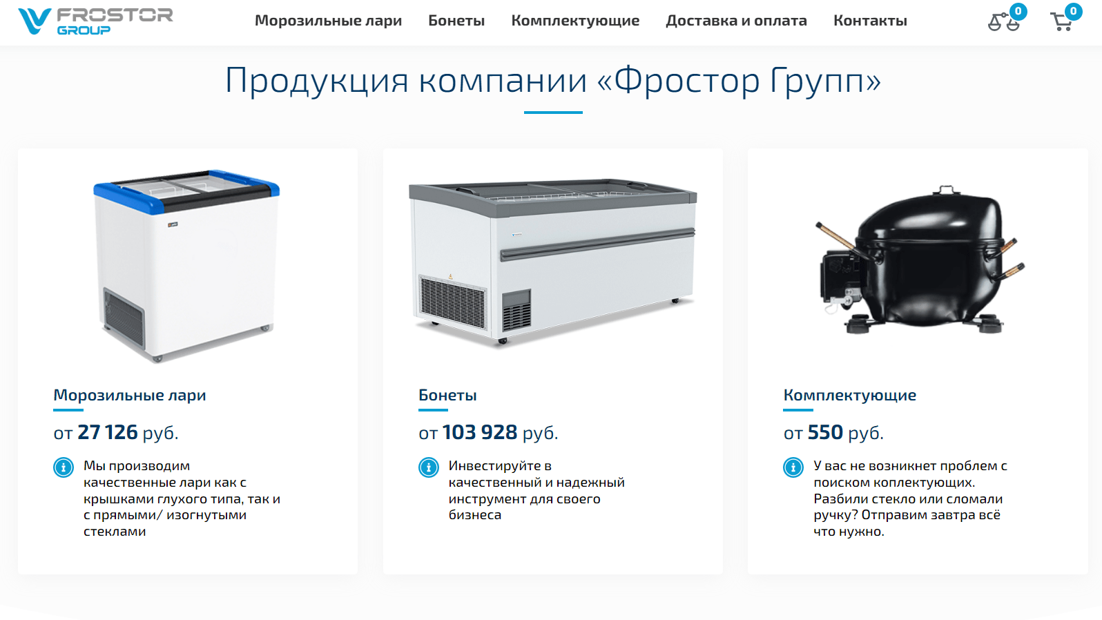 Наш пример — магазин «Фростор Групп» сделан на Битрикс. Изначально проект был направлен на b2b продажи, но потом компания решила ориентироваться на розницу.