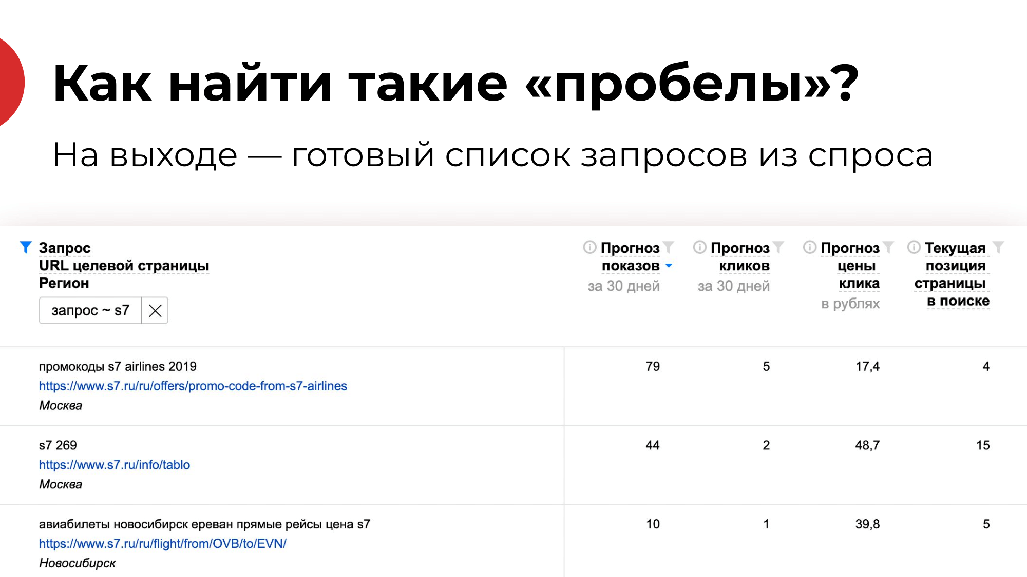Несмотря на то, что в сайт S7 уже вложены ресурсы, он выпадает из воронки пути пользователя, когда ему нужна более детальная информация о рейсе. Как найти такие пробелы быстро и легко?