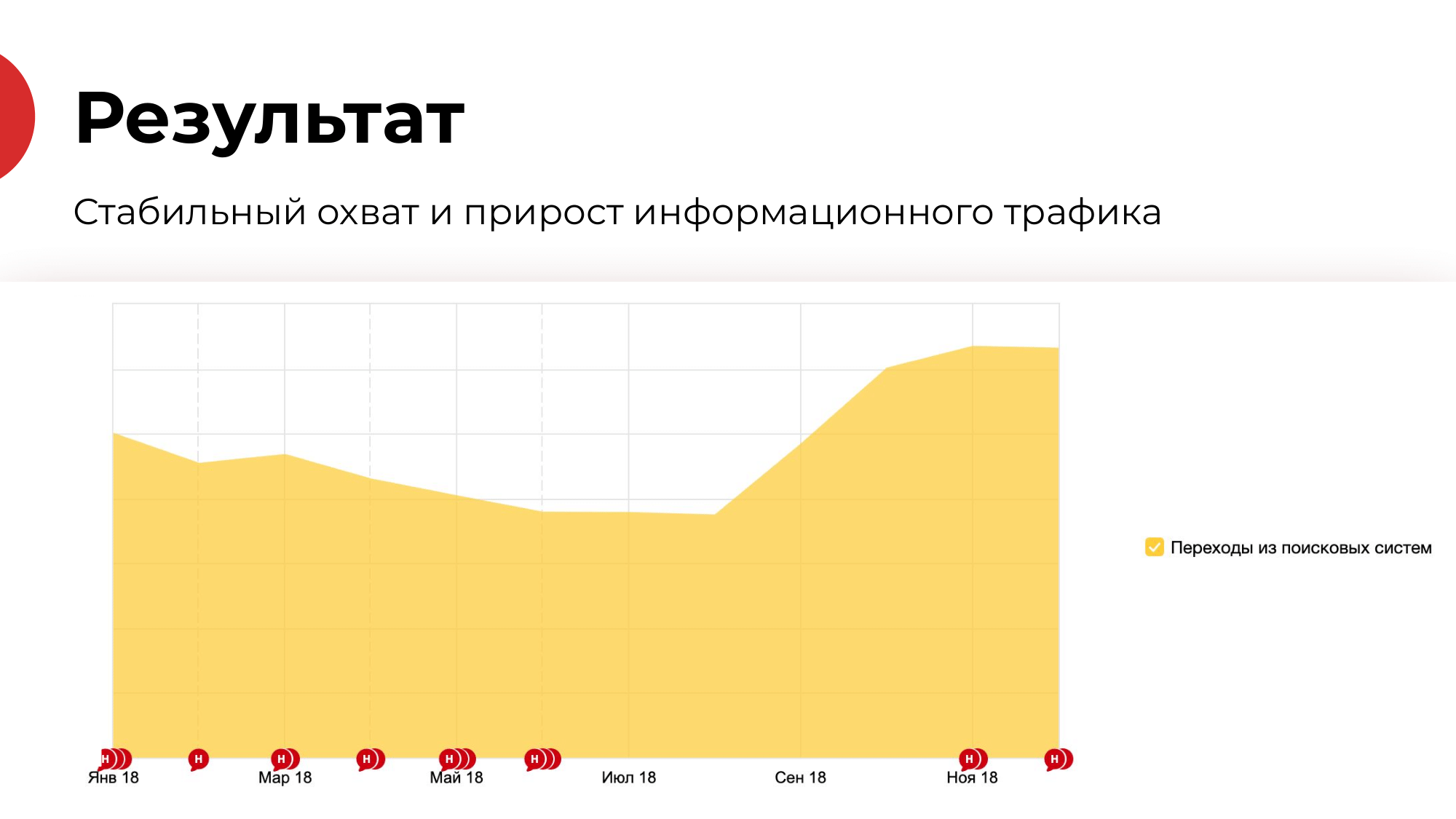 В русском языке всего 23 вопросительных слова, которые в сочетании с брендом или фразой создадут узкоспециализированный запрос для небольшого бренда. Мы работали по такой схеме со Skillbox, когда он был не очень большим, — искали те фразы, с помощью которых люди могут проявлять интерес к обучению и готовили на такие запросы ответы. Всего мы написали 1 000 небольших статей. За первый месяц с таких статей мы получили 1000+ переходов.