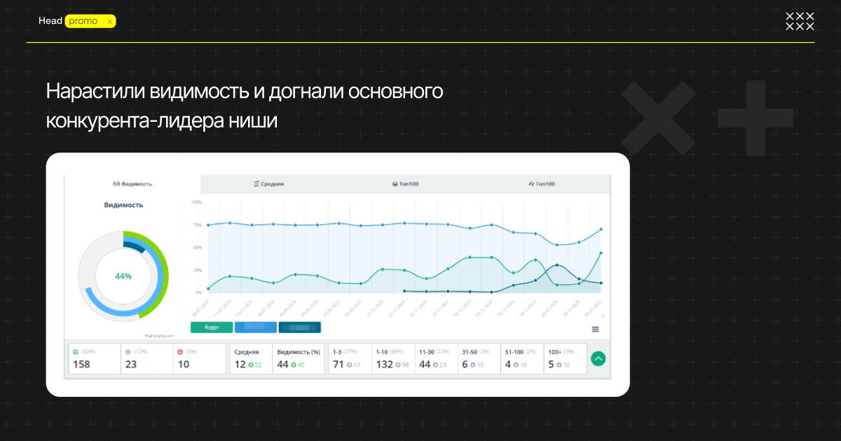 Также нам удалось повысить видимость сайта и приблизить его к главному конкуренту.
