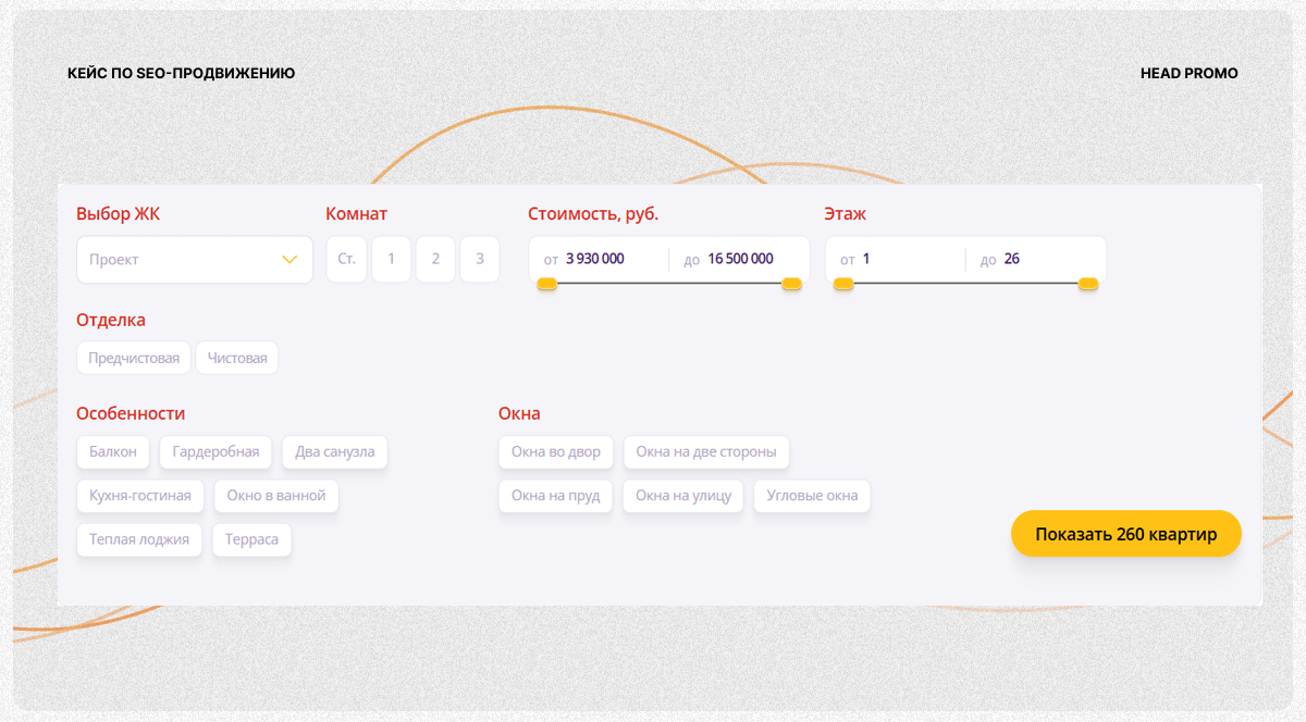 Данный результат служит хорошим примером эффективности детально продуманной и реализованной стратегии SEO-продвижения, которая отлично подходит для городских застройщиков.