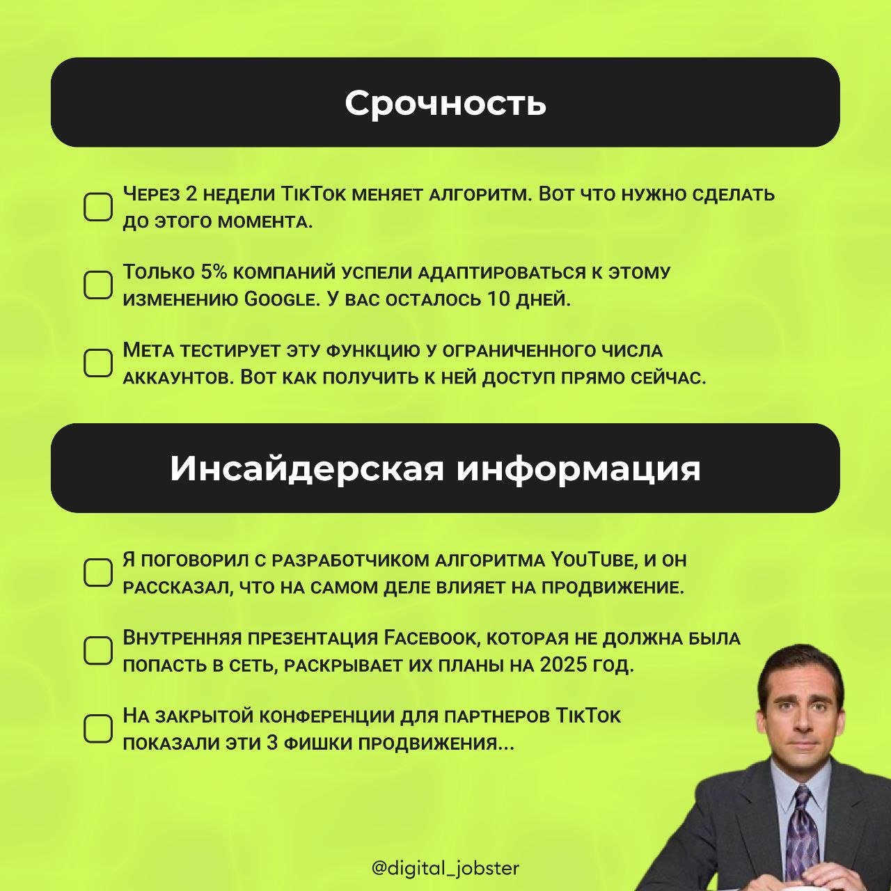 Мы команда Джобстер, и сегодня говорим о соц сетях и контент маркетинге! Мало делать крутой контент, важно, чтобы пользователи его увидили и перешли к вам на пост, страницу, сайт и тд. Для этого помогают слова и фразы тригеры)