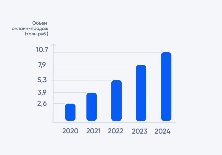 Российский рынок электронной коммерции демонстрирует рост, но рост замедляется. Согласно данным аналитиков, по итогам 2024 года объем онлайн-продаж в России вырастет на 36% и достигнет 10,7 трлн руб. При этом доминирующее положение на рынке занимают маркетплейсы: по данным Data Insight, в 2023 году на Wildberries и Ozon приходилось 76% онлайн-заказов, тогда как в 2022 году доля составляла 67%.