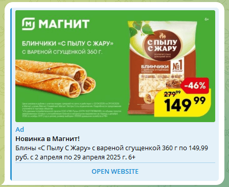 Этот вид рекламы работает в социальных сетях и других платформах, где можно точно настроить параметры аудитории. Таргетинг позволяет показывать объявления людям по конкретным параметрам: возраст, пол, интересы, место жительства и поведение в интернете. Например, если человек подписан на группы про фитнес, ему можно показать рекламу спортивного питания. Популярные площадки - ВКонтакте, MyTarget, Telegram Ads.