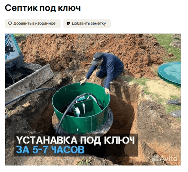 Например, если вы устанавливаете септик, покажите этапы подготовки и финальную установку.