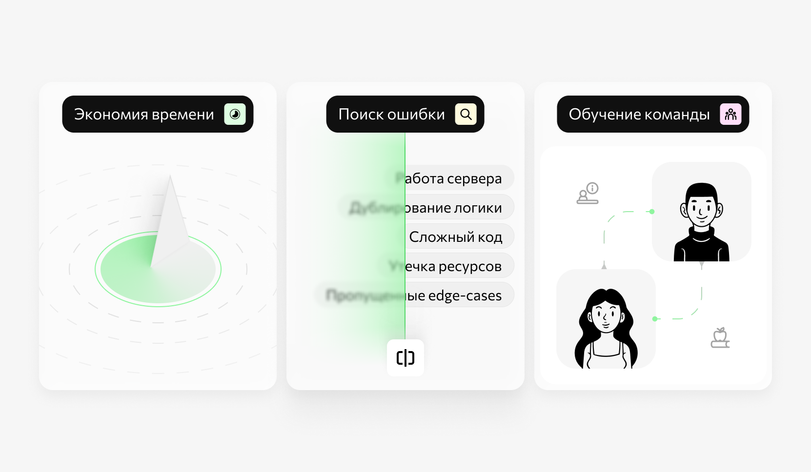 Как уже говорилось, code review является процессом обмена опытом, а не массового осуждения и критики. Соответственно, в рамках кода-ревью более опытные коллеги дают рекомендации, выявляются неочевидные ошибки, обосновывают свои решения — растет компетенция как отдельных специалистов, так и команды в целом.