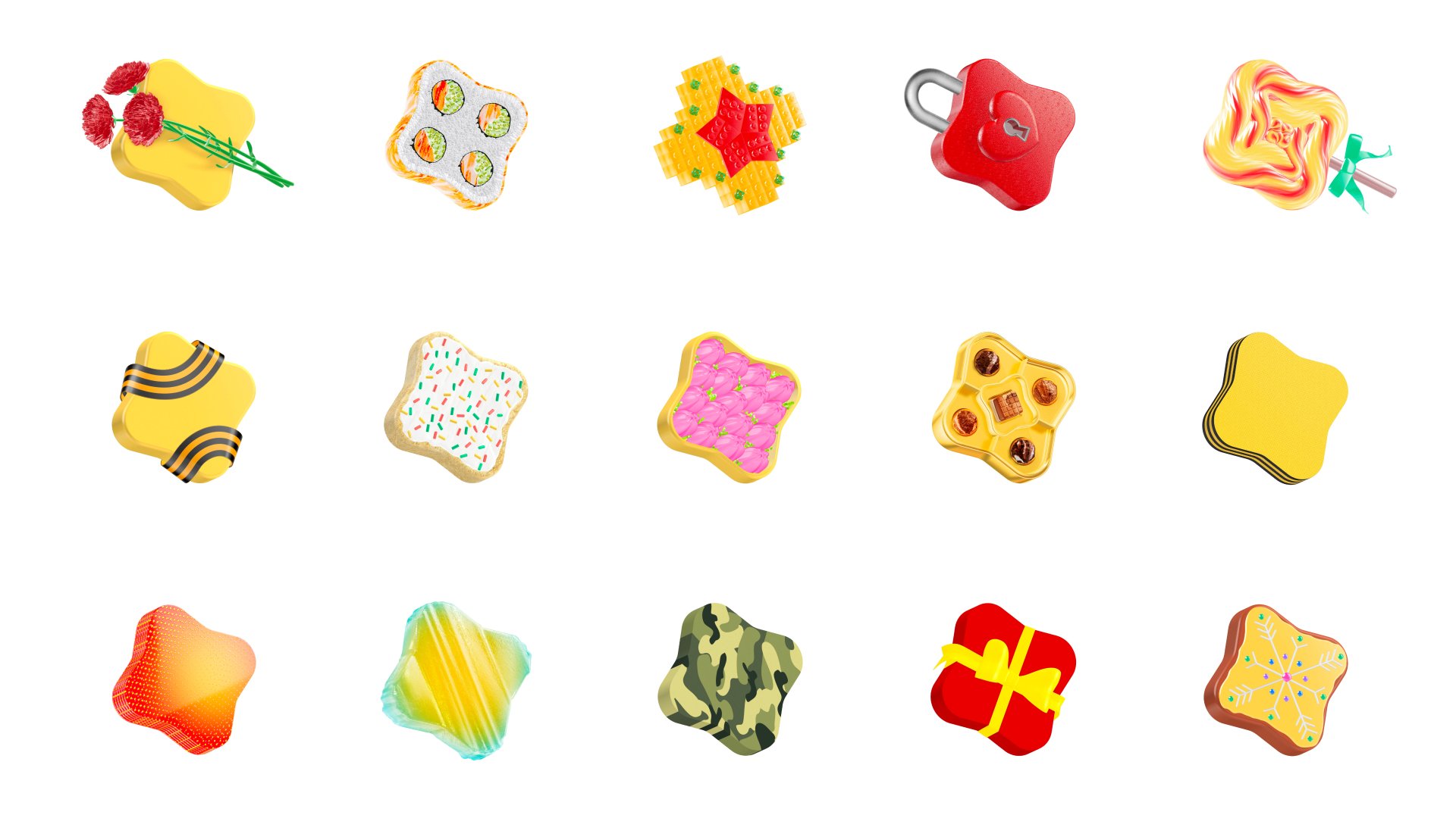 Вернемся на пару лет назад, когда онлайн-сервисы для 3D только набирали обороты, а нейронки ещё плохо справлялись с генерацией изображений по референсам. Именно тогда дизайн-команда айти-агентства Фьюче активно копалась в Spline. Вместо туториалов решили попрактиковаться на чём-то полезном, чтобы результат не ушёл в стол. Так появился челлендж: собирать праздничные версии логотипа для внутреннего продукта «TryBaby — первый прикорм».