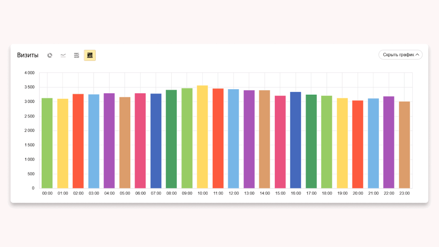Постройте график активности по часам. Равномерная «линия» вместо пиков в рабочее время — тревожный сигнал.