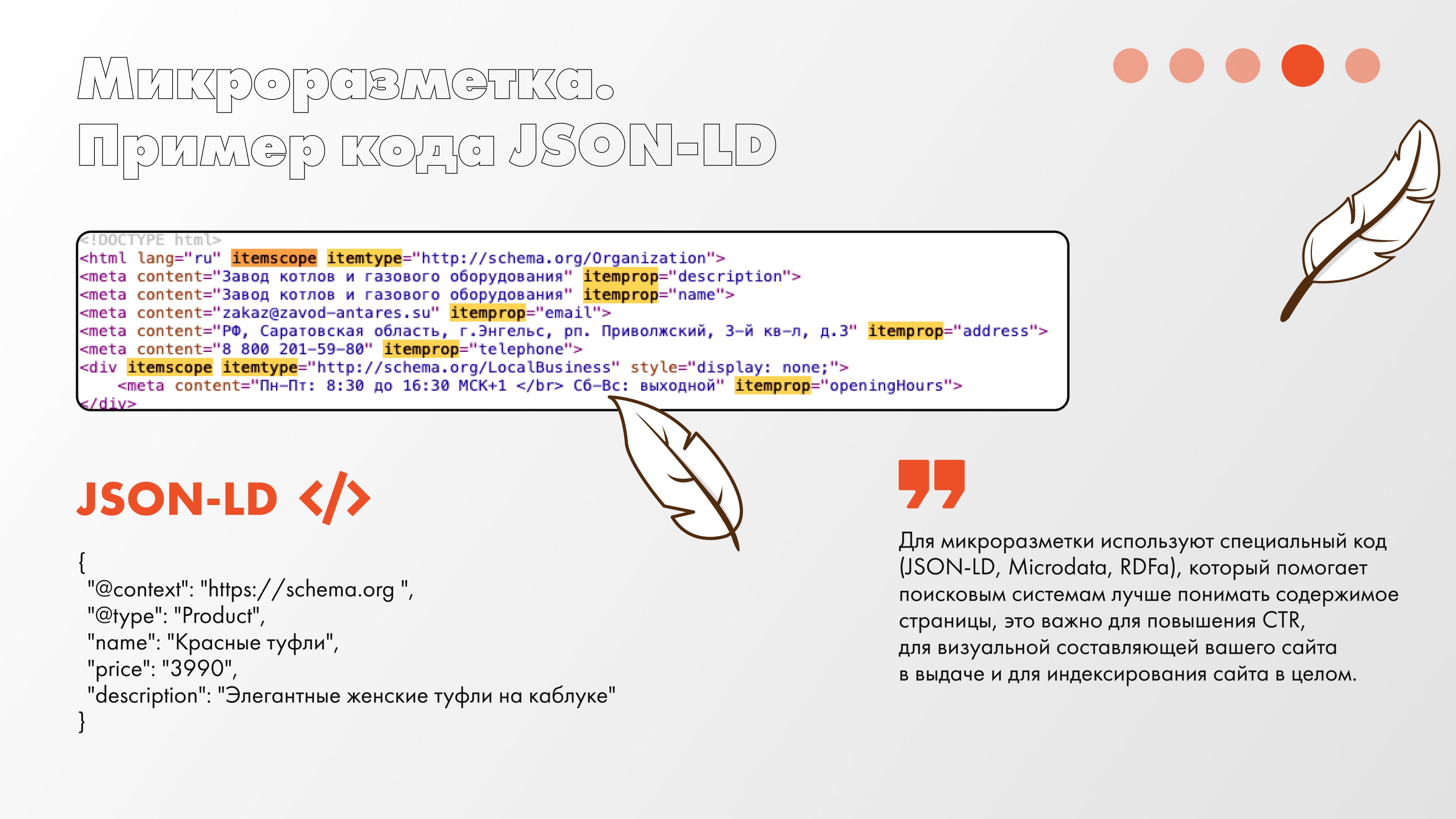 Для микроразметки используют специальный код (JSON-LD, Microdata, RDFa), который помогает поисковым системам лучше понимать содержимое страницы. Соответственно, делаем вывод, что данный пункт важен для повышения CTR, для визуальной составляющей вашего сайта в выдаче и для индексирования сайта в целом.