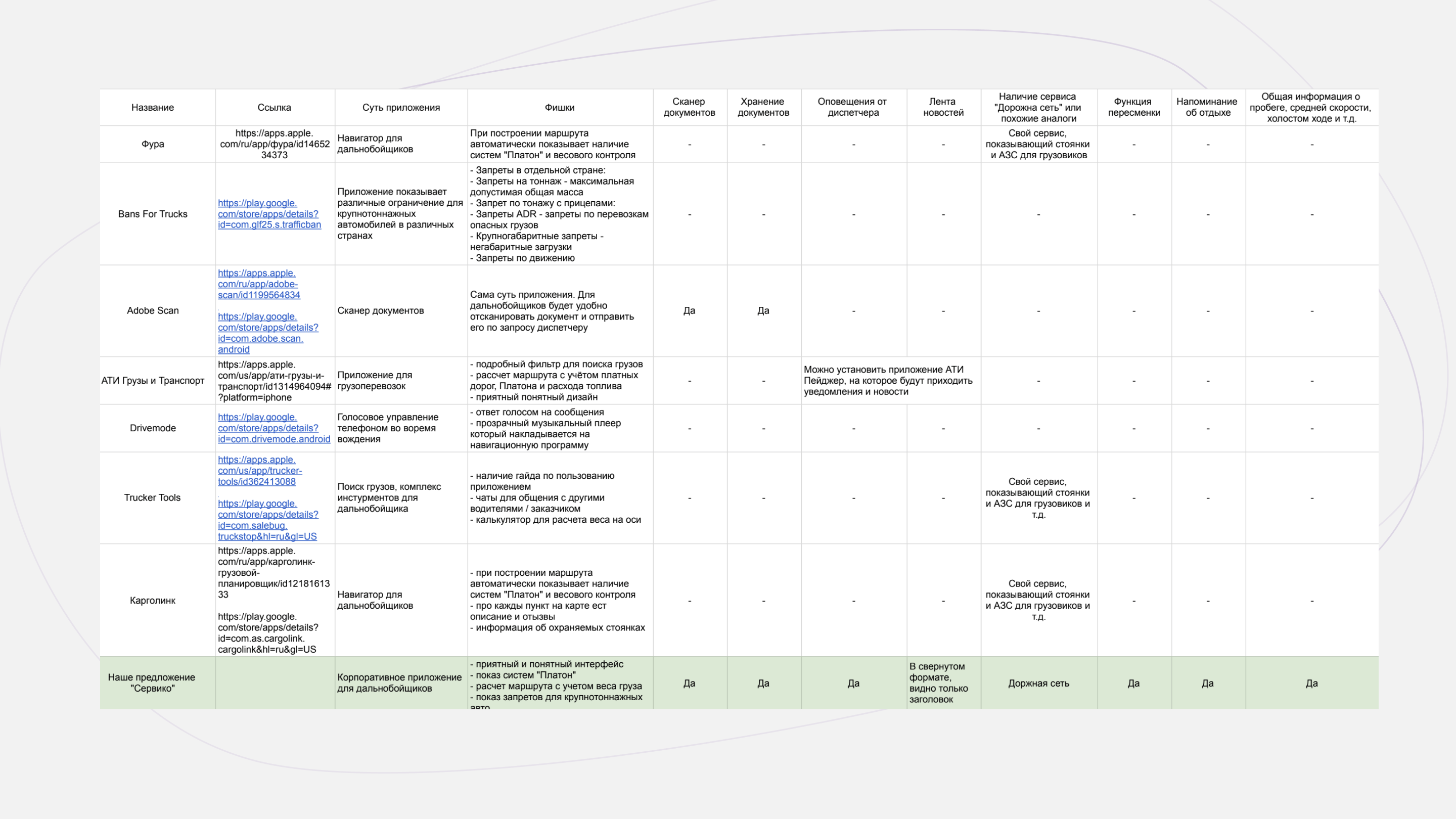 Так выглядит конкурентный анализ