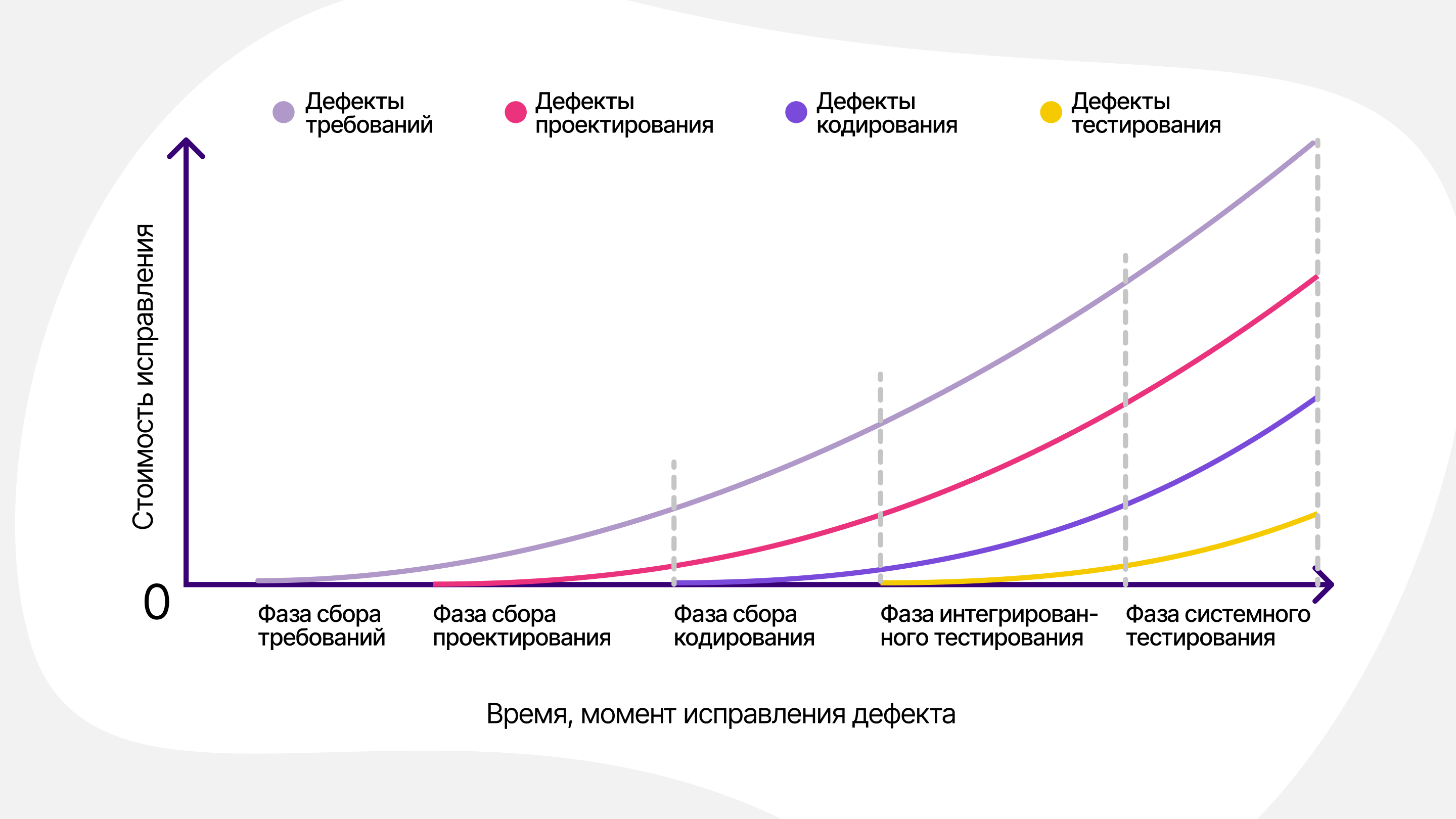 Проиллюстрировали зависимость стоимости исправления ошибок от момента их выявления