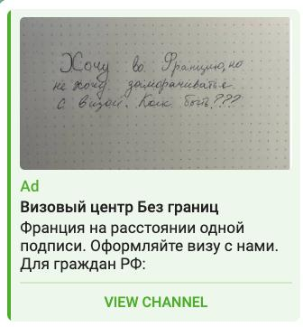 Пример объявления в Telegram Ads