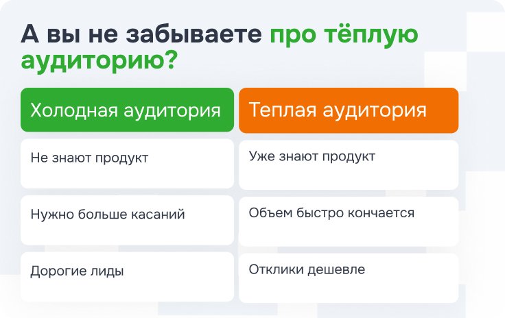 Если все средства уходят в холодную аудиторию, лиды будут дорогими. Люди не знают продукт, не доверяют, им нужно больше касаний. В итоге стоимость лида растет, а конверсия снижается.