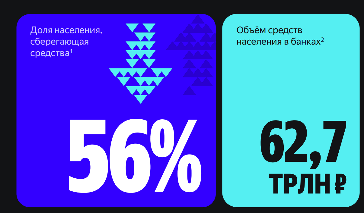 По данным рынка, 56% населения сохраняют свои накопления, а общий объем сбережений в банках превышает 62 трлн рублей.