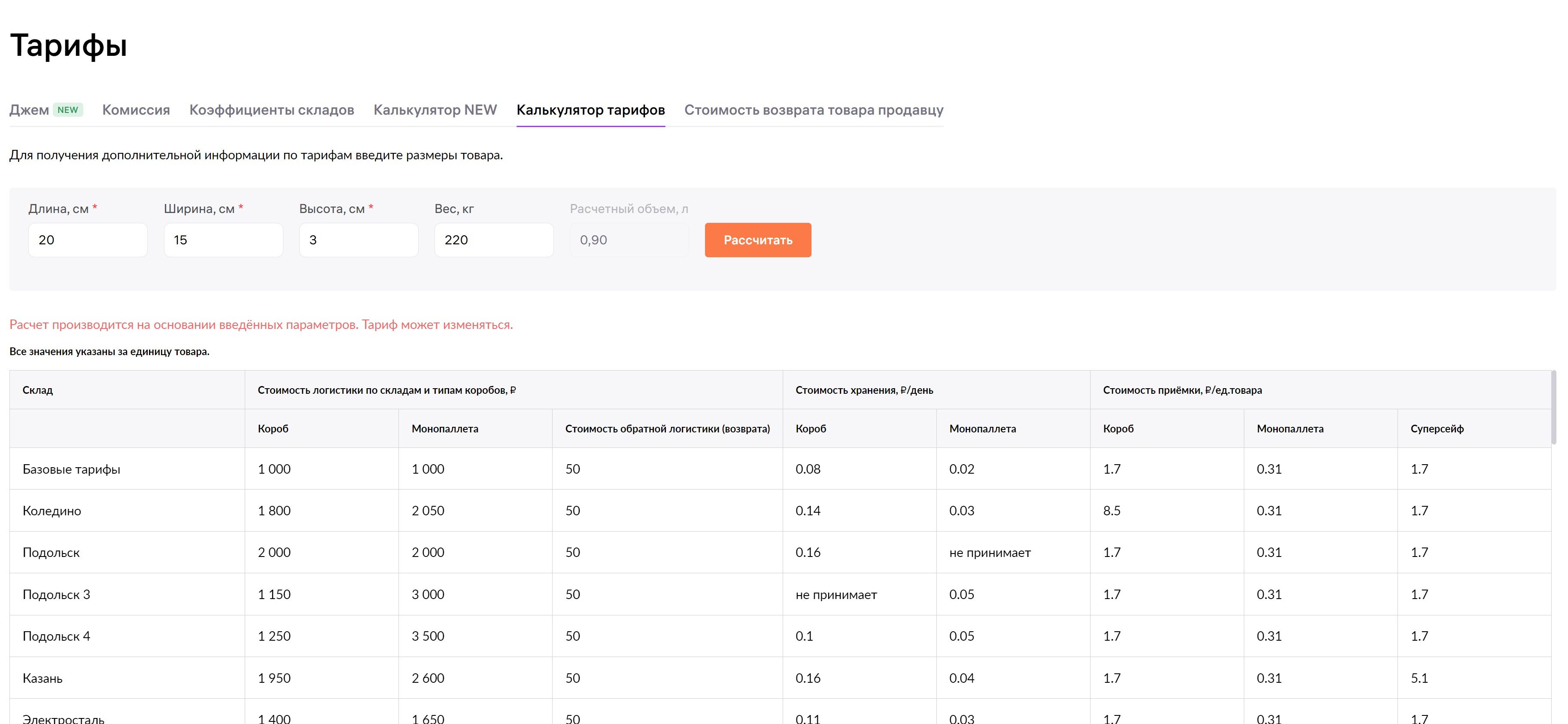 Где найти: в разделе «Логистика» вашего личного кабинета. Для расчета доставки можно воспользоваться калькулятором тарифов на логистику Wildberries.