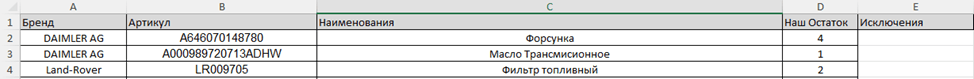 1) Если есть цена исключения, то эту цену мы записываем в «цена для загрузки». Розница (РЦ) будет пустой. Желтый цвет заливки (желательно светлый) для «Цены для загрузки».