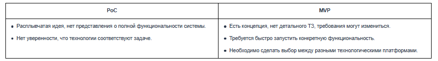 Когда подойдет PoC, когда — MVP: