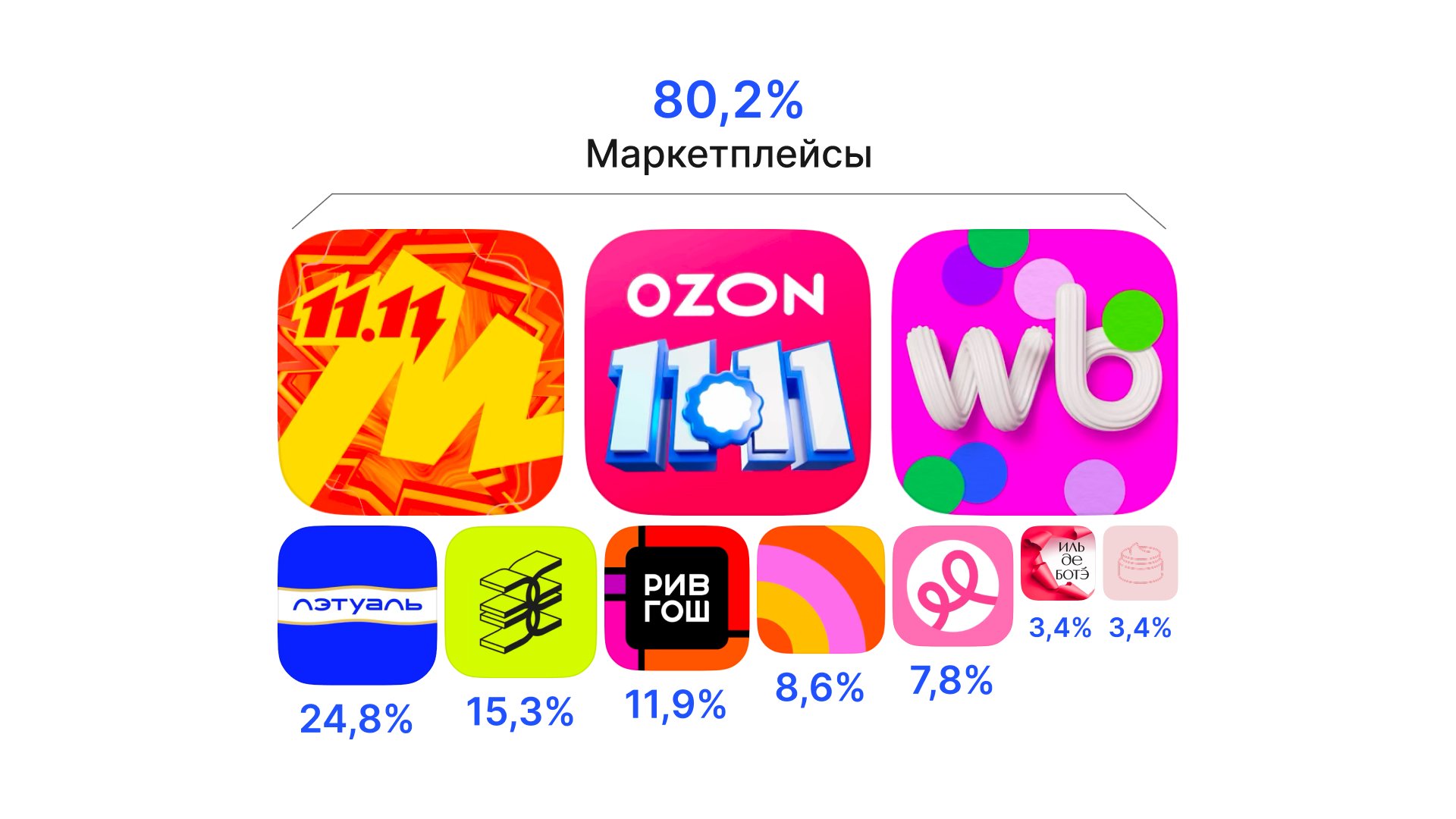 Среди специализированных приложений лидерами стали «Лэтуаль» и «Золотое Яблоко». Однако более 80% респондентов отдали предпочтение маркетплейсам, основными преимуществами которых стали выгодные цены и широкий ассортимент.
