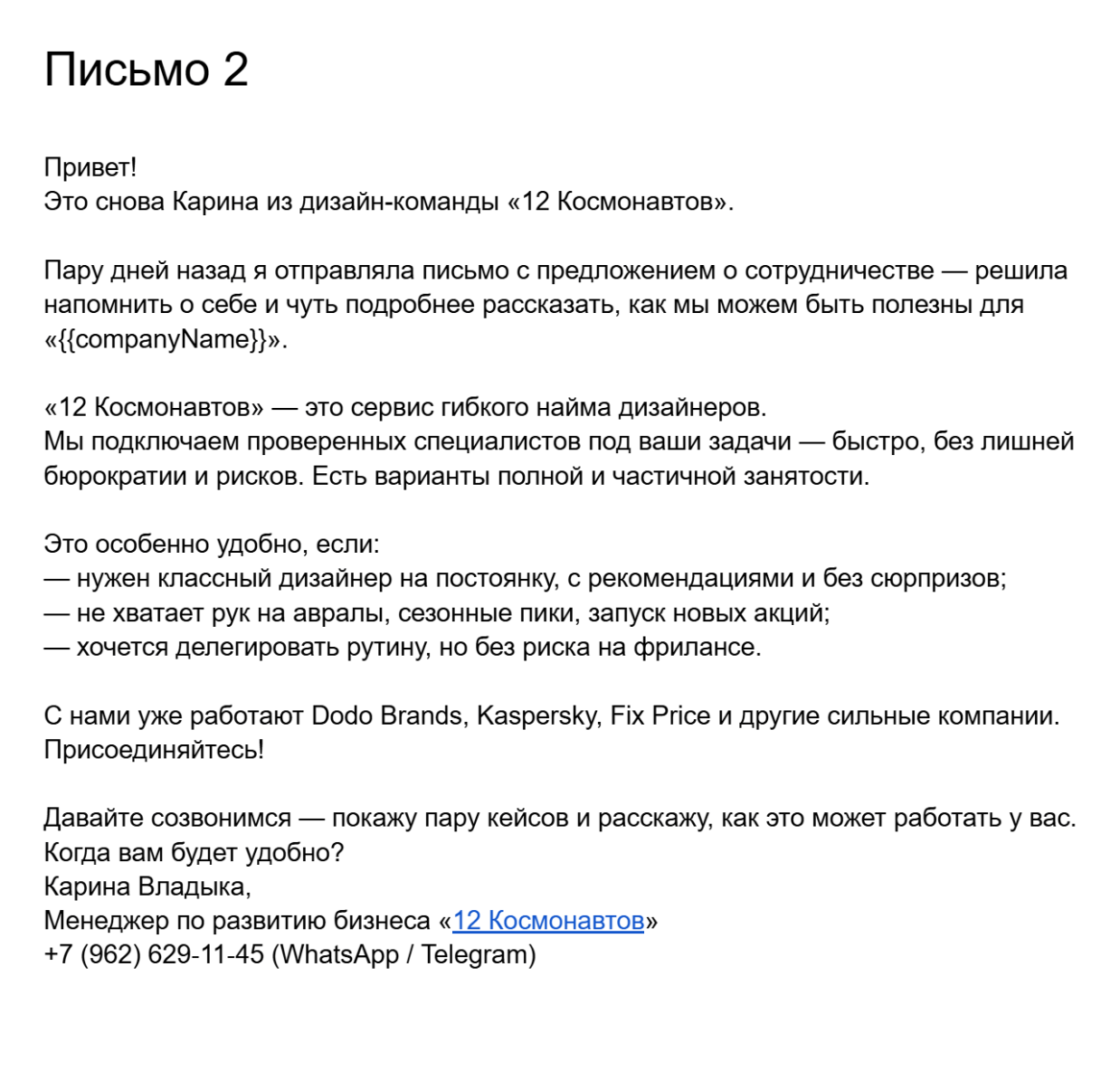 1. Динамические переменные Не ограничивайтесь только «{Имя}». Используйте различные переменные, такие как:
