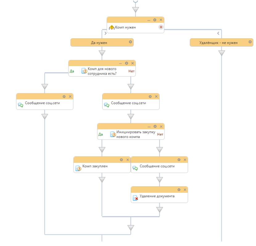 Важно честно отметить: в текущей версии шаблона эти ветки фиксируют выбор, но не создают отдельных заданий на закупку или выдачу. То есть логика уже подготовлена, но еще не доведена до автоматического действия. Нам это и не нужно, тк ответственный за сборку рабочего места офисный сис.админ, у него есть всё с избытком, но у себя можете добавить задание на закупку и тд.