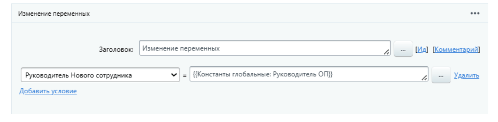 То есть не нужно вручную выбирать руководителя каждый раз. Если сотрудник выходит в SEO, продажи, разработку, клиентский сервис, техотдел и так далее — процесс сам подставляет нужного человека.📢 Сильно рекомендую не завязывать процесс на конкретном сотруднике, а заводить постоянные константы для каждой роли в компании. Это избавит от геммороя часов работы админа портала, когда сотрудник ушел в отпуск/уволился/сменил должность. Меняем константу - ответственный меняется везде, где задействован. Профит.